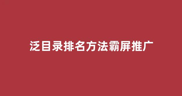 明白了,您需要一篇关于泛目录排名方法霸屏推广的文章。以下是根据您的需求修改后的内容: